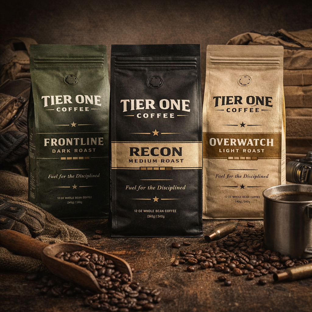 TIER ONE COFFEE offers small-batch roasted blends designed to fuel productivity, focus, and resilience. Our initial product lineup includes three core blends: Frontline (Dark Roast), Recon (Medium Roast), and Overwatch (Light Roast) each crafted to meet the needs of different coffee drinkers while maintaining premium quality and consistency.